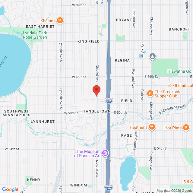 Southwest corner of Nicollet Avenue and 48th Street in South Minneapolis, in the brownstone building at the southernmost entrance. Our clinic is at street level with step-free access.